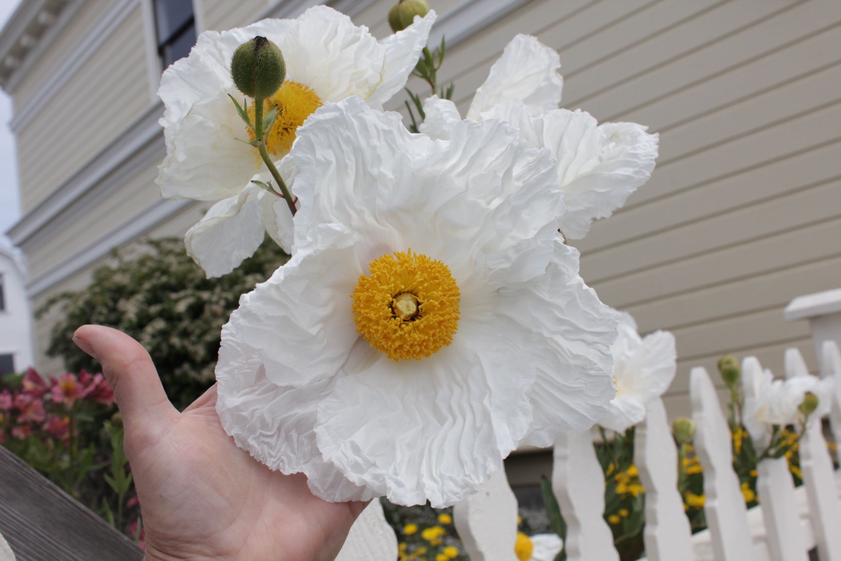 Matilija Poppies, Romneya coulteri, are crepe papery white flowers with sunny centers that bloom as large as your open hand. Come late spring and early summer, the Mendocino Art Center (MAC) always boasts a stunning display of the show-stopping, statuesque California natives. Famous for being hard to grow, the care of these persnickety perennials can be tricky.