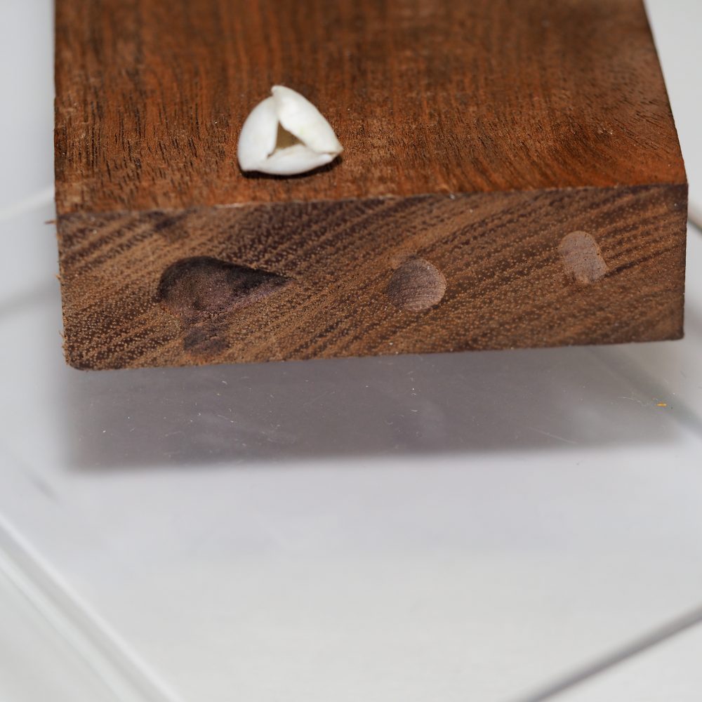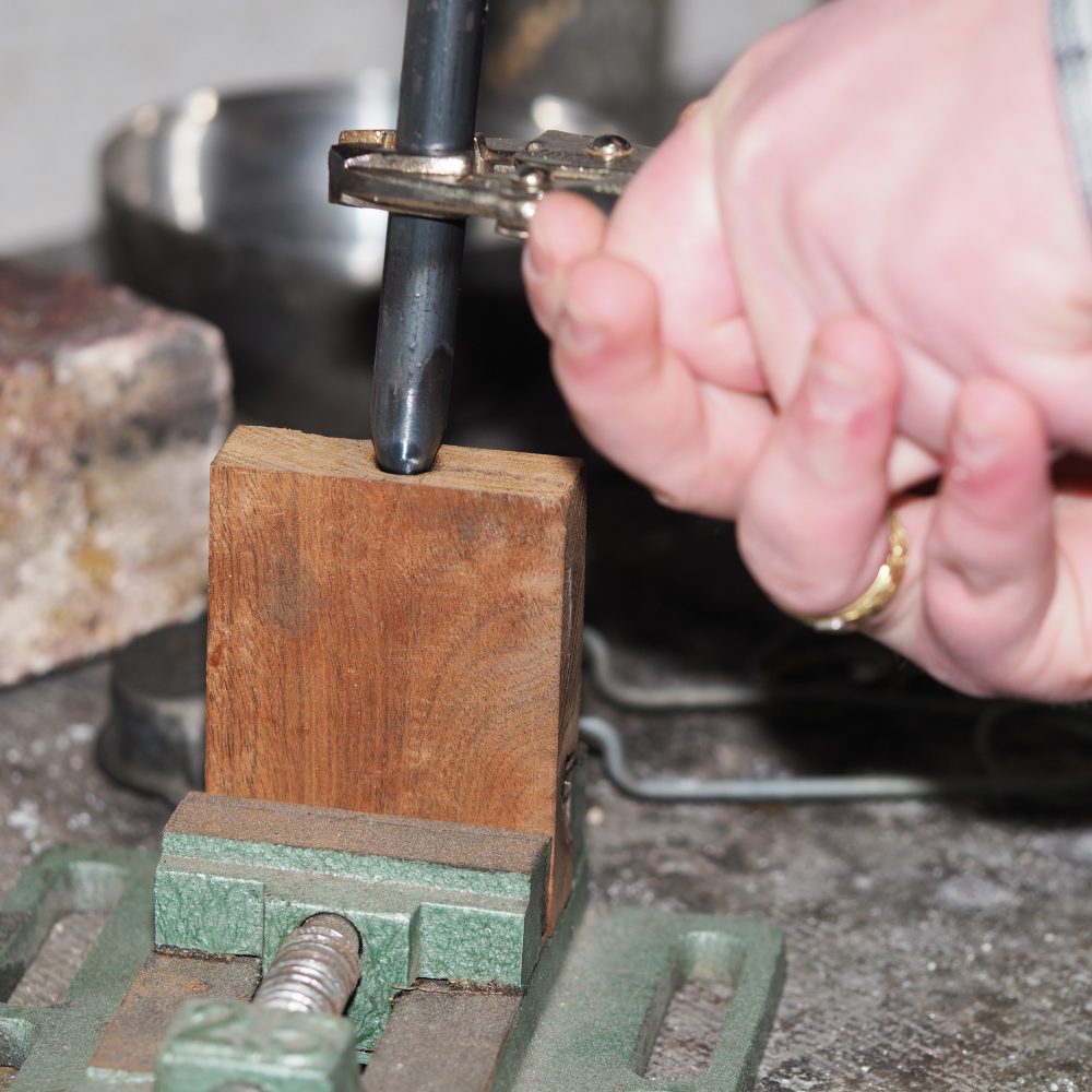 Here he made a form into the piece of wood after Tom made a paper bud as a model.