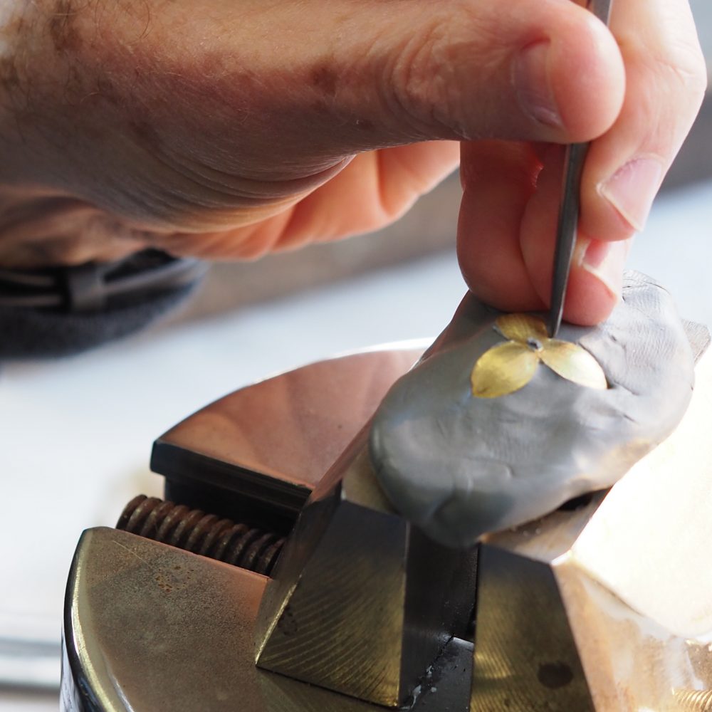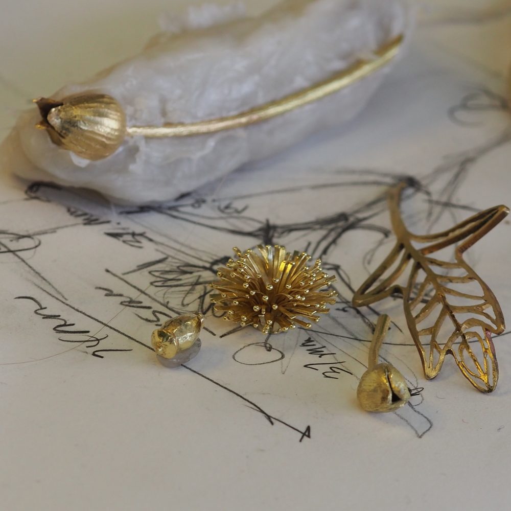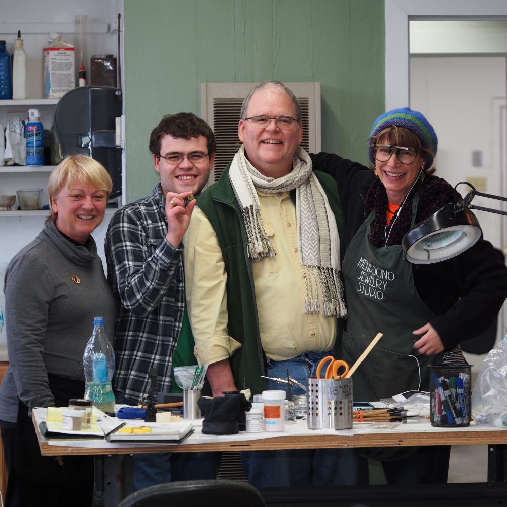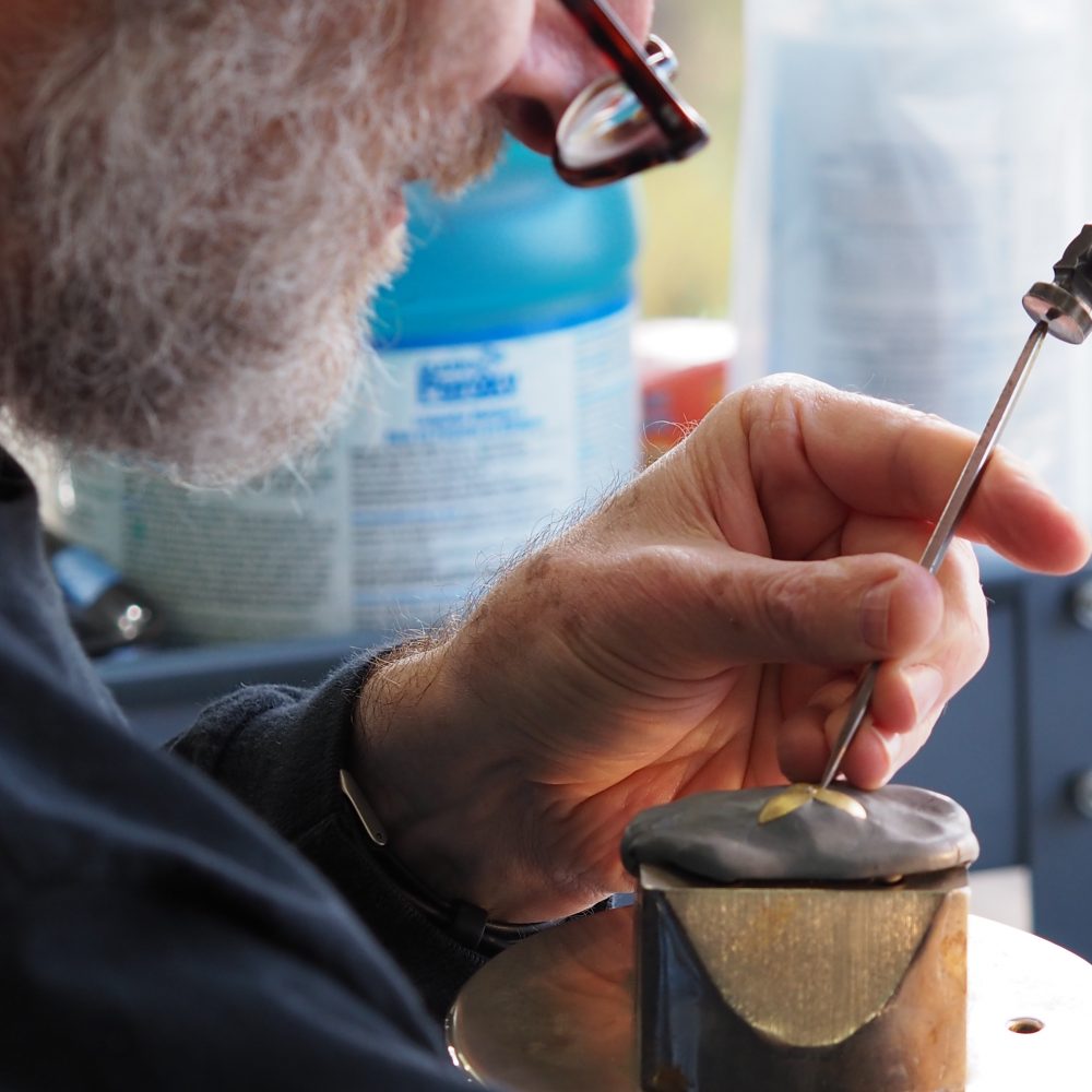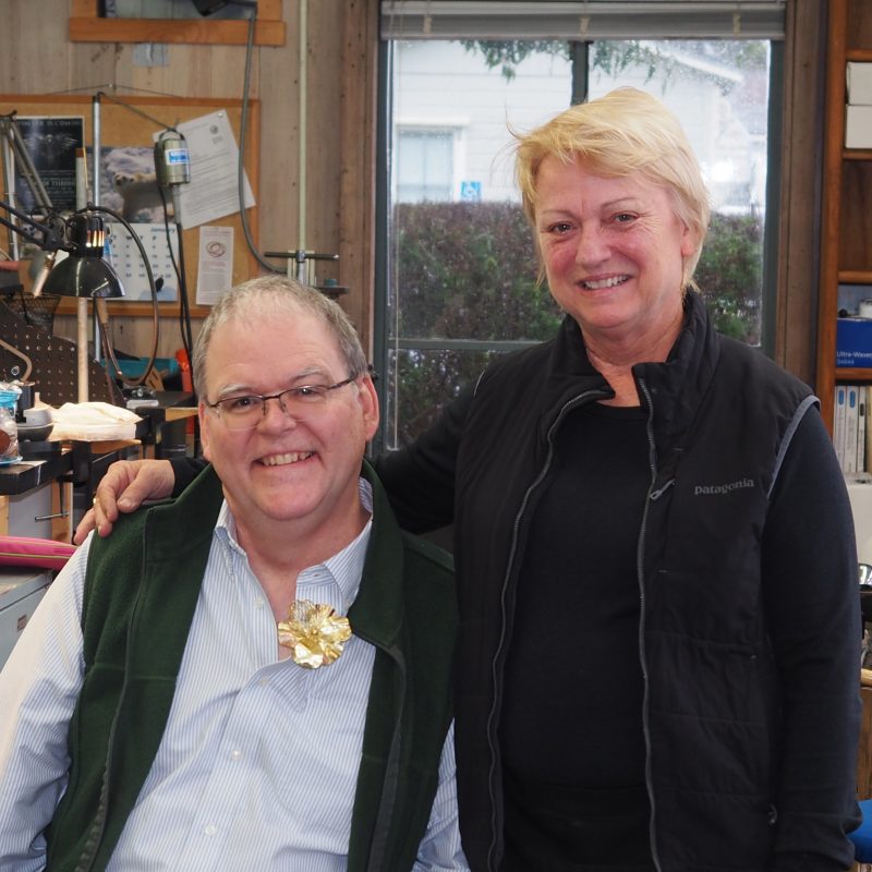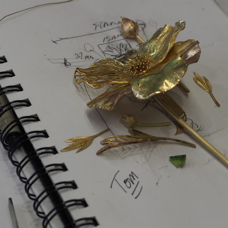 The Matilija Poppy Brooch is created here by Tom Herman and myself Patsy Croft for the benefit of the Mendocino Art Center. In our journey of studying the Masters of the past, we have come to realize the magnificent jewels of their time were not created by one. Contributing artist Nancy Gardner, Bob Weinstock, and Ethan Herman all play a large part in this amazing project. Gold for this project was donated by the Mendocino Board member John Cornacchia and the artists are donating their time to support the school. Below you can be a part of our journey.