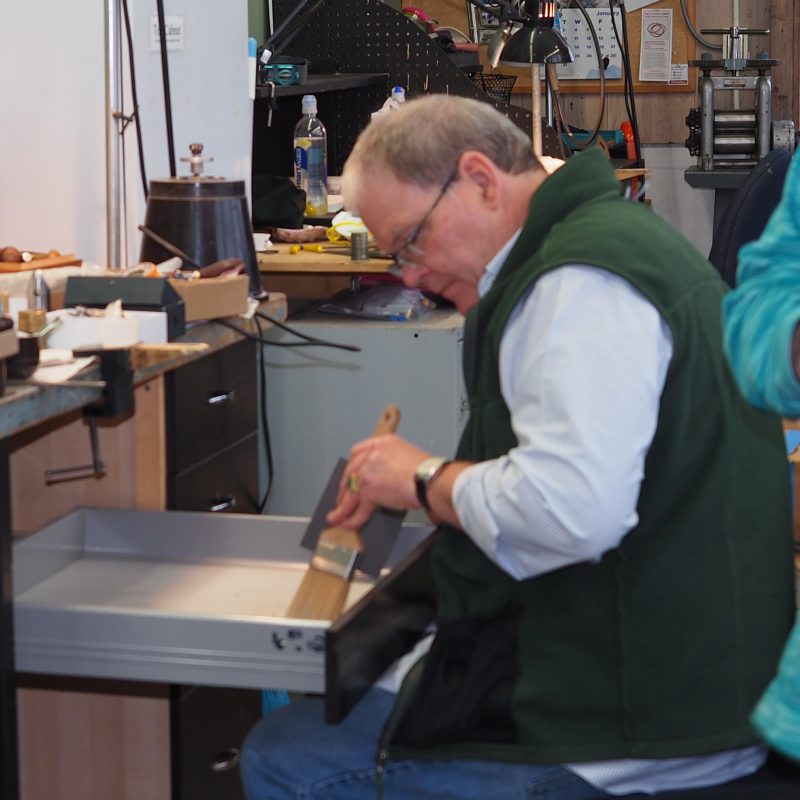 While the saw piercing is being finished in Tom’s studio I have sample parts and it is time to test more enamels.