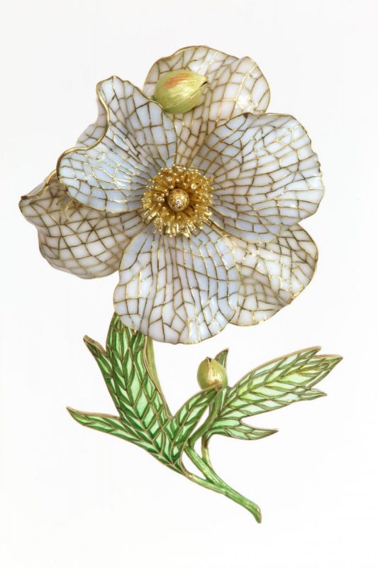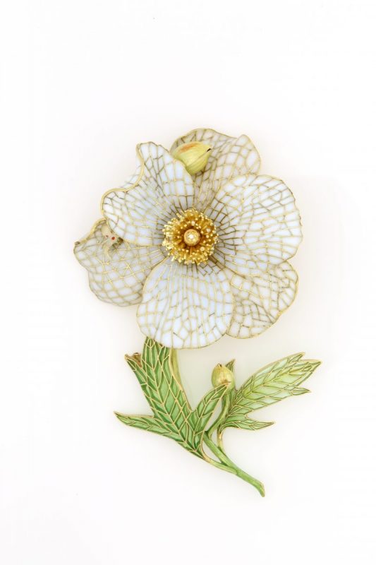 In the Spring of 2019, the approximately 3” x 5”, 18-karat gold with diamonds and fine plique-à-jour enameling, Matilija Poppy Brooch will be auctioned at Sotheby’s” Magnificent Jewel” Auction in New York City, ( Sotheby’s was also responsible for auctioning the Ada Brooch) with all proceeds to benefit The Mendocino Art Center. We are so pleased to support this gem of an organization. Please contact us if you would like more information about the Mendocino Matilija Poppy Project.