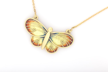 Champleve Techniques for an Enamel Butterfly Pendant with fused on decorations in the wings.