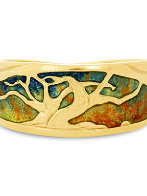 This Champleve ring I removed the background of the ring with a graver, chased the tree in and enameled the recession.