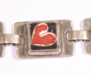 In cloisonné we never want our warm colors to touch the silver. It causes burning. Silver is going to hold heat longer than copper so we use a hard firing base. And in some incidences we will use several layers of the hard firing flux before layering in our warm colors to be very sure the red never touches the silver base.