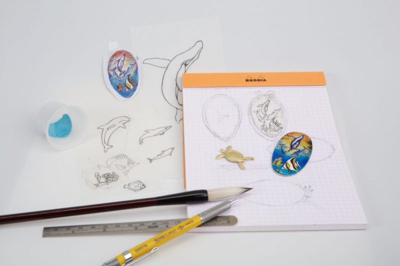 Custom designs are often painted on paper with watercolors prior to beginning the process in order to estimate the appearance of the final product.